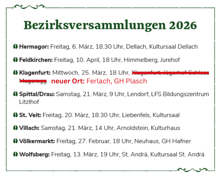 Achtung - der Veranstaltungsort des Bezirksjägertages Klagenfurt hat sich im Terminaviso geändert: